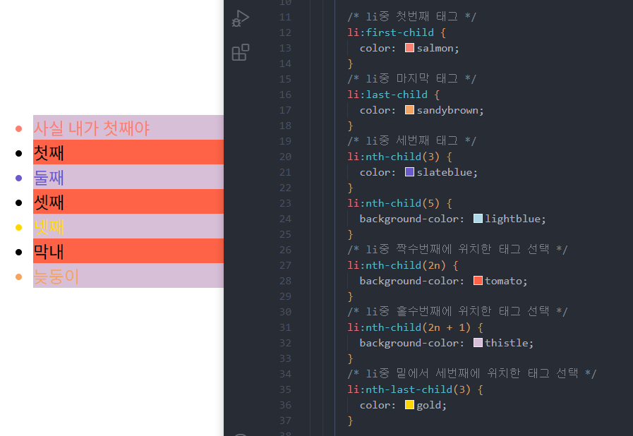 부모태그안에 마지막번째에 위치한 자식태그를 선택할 때 사용한다.