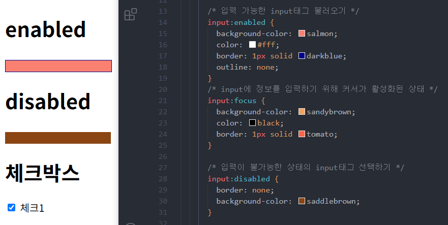 상태 선택자는 서치바나 로그인창, 체크 박스 등 입력양식의 상태를