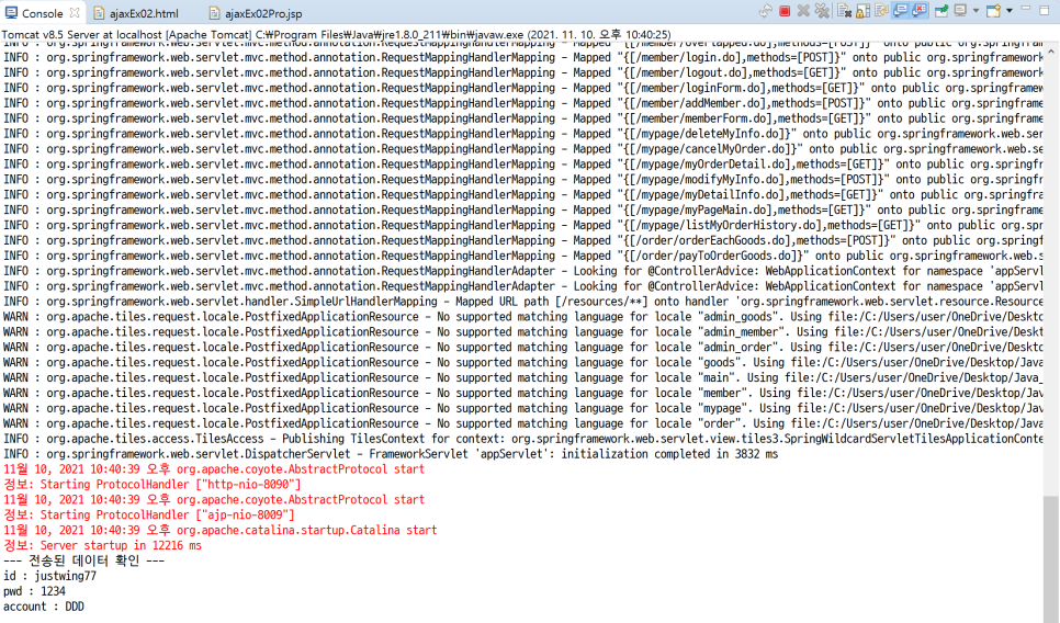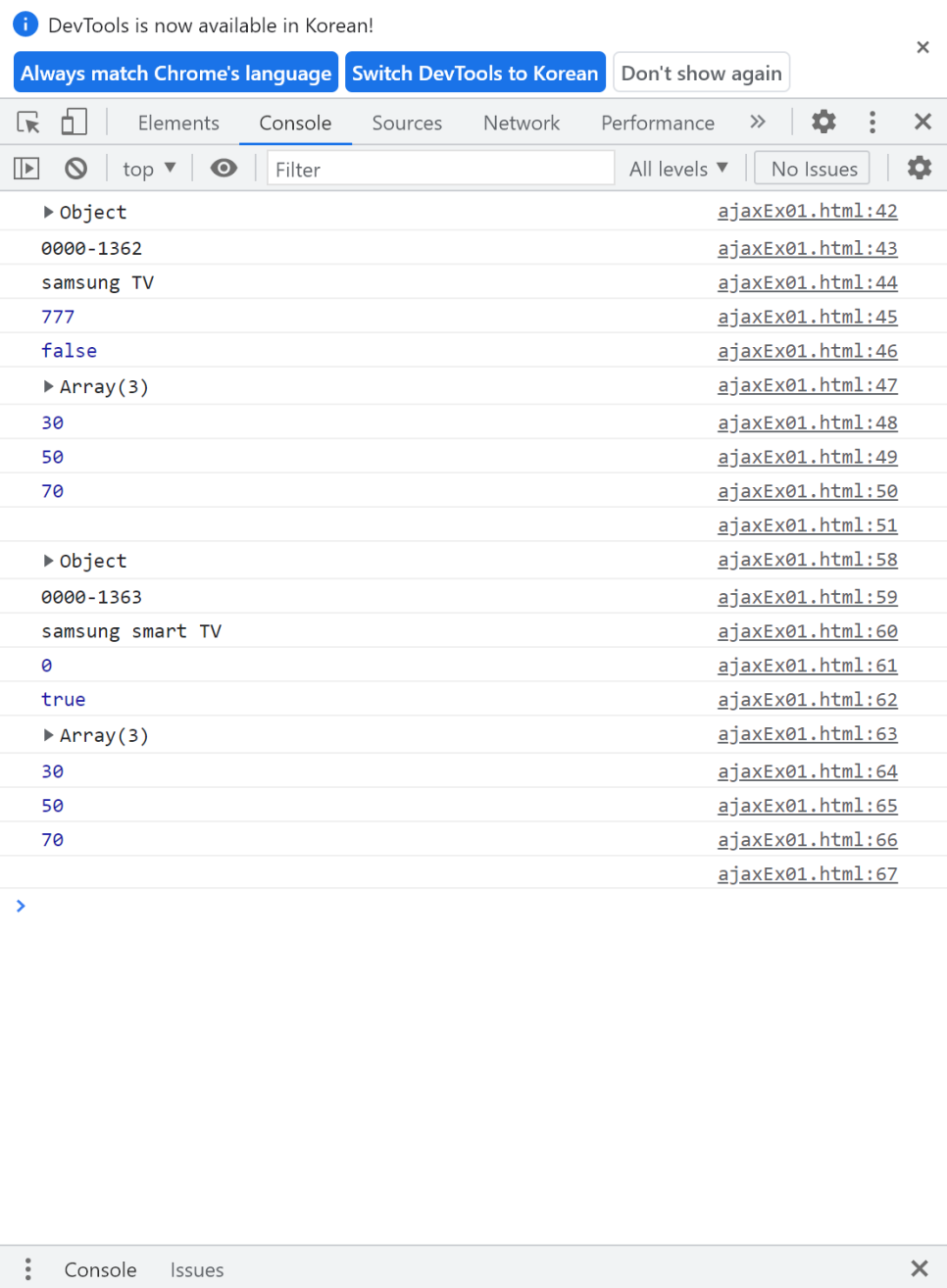 👉 콘솔에서 출력된 값=Ajax로 받은 값!