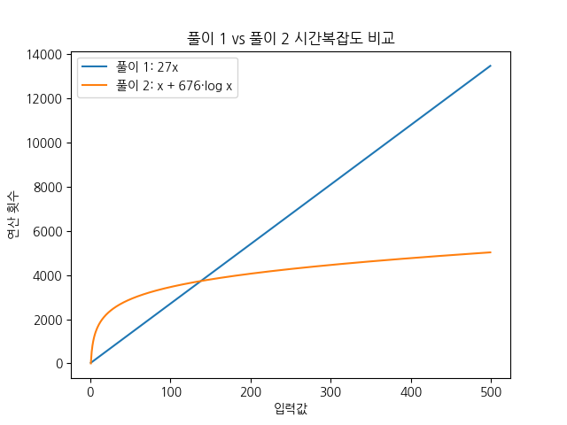 문자열의 크기는 최대 까지 들어오기 때문에 의 풀이로는 해결하지 못한다.