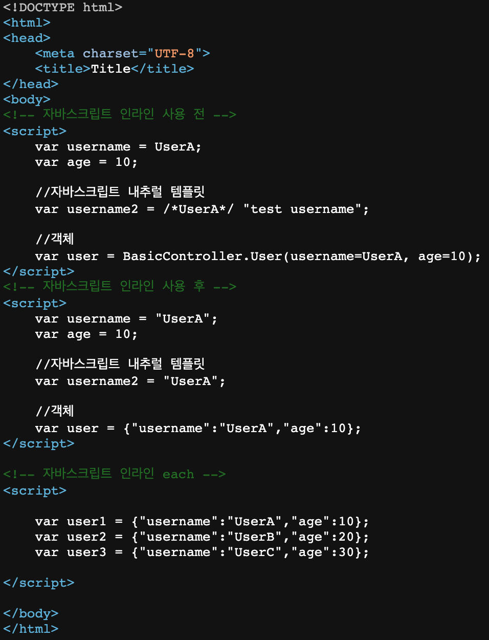 인라인 사용 전 : var username2 = /*userA*/ "test username";