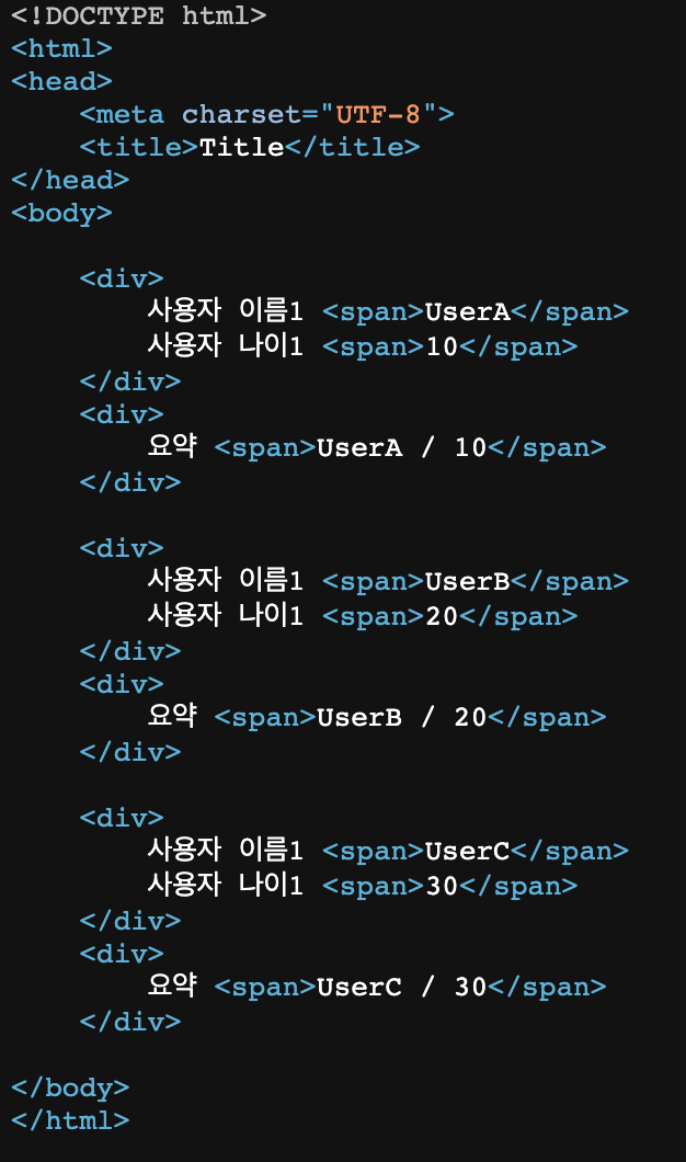 요약 <span th:text="${user.username} + ' / ' + ${user.age}"></span>