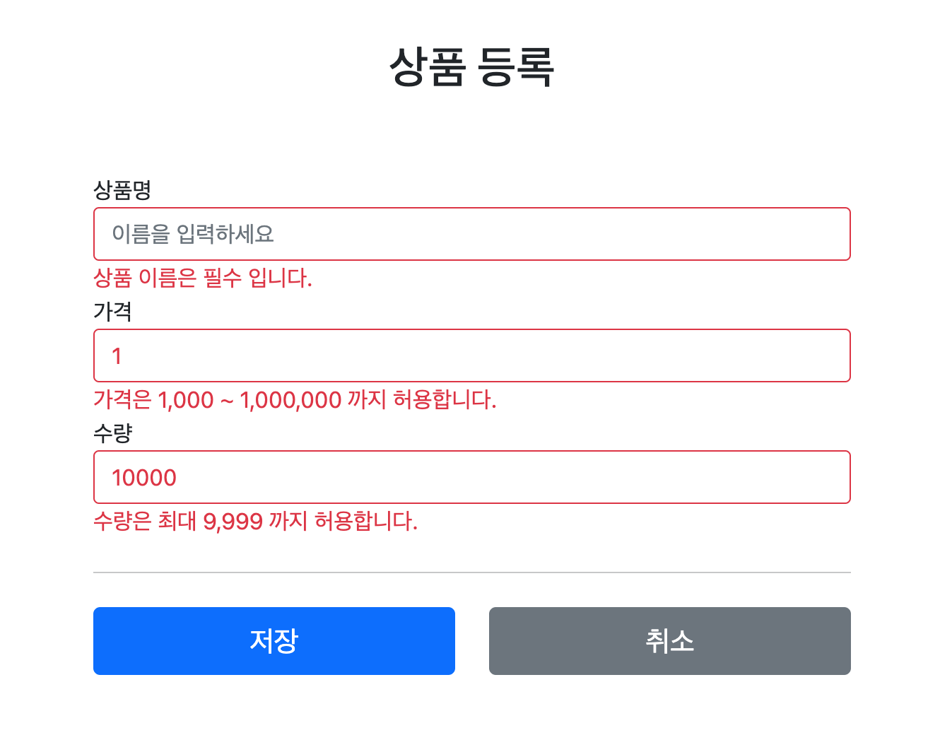 errors.put("quantity", "수량은 최대 9,999 까지 허용합니다.");