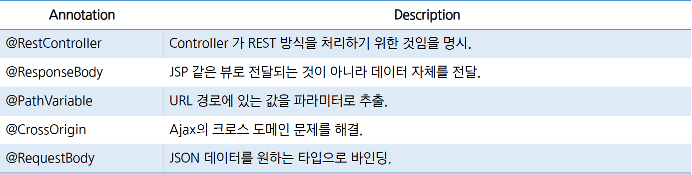 - 기존의 GET/POST 외에 PUT, DELETE방식을 사용하여 리소스에 대한 CRUD를 처리할 수 있다.