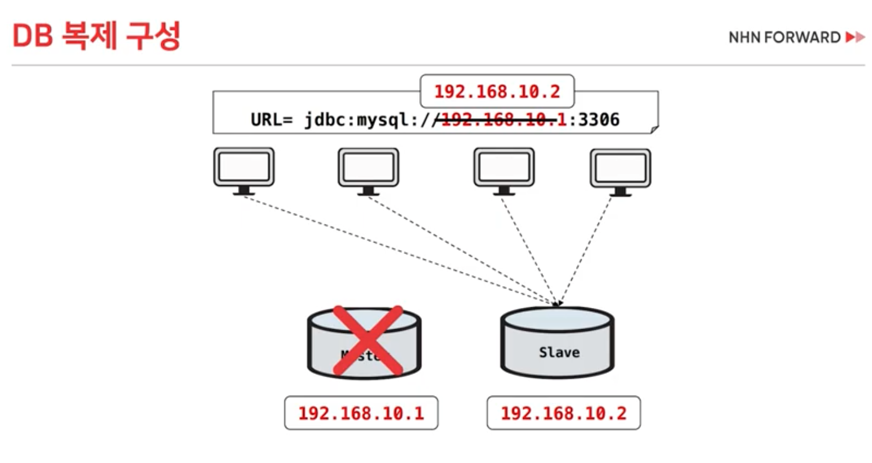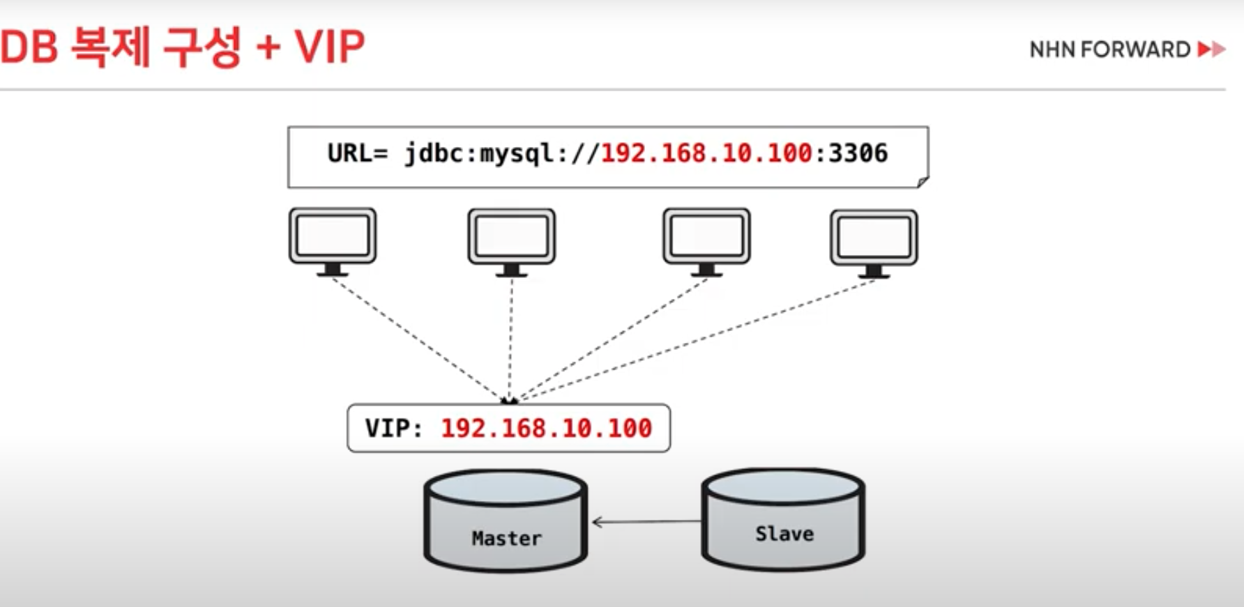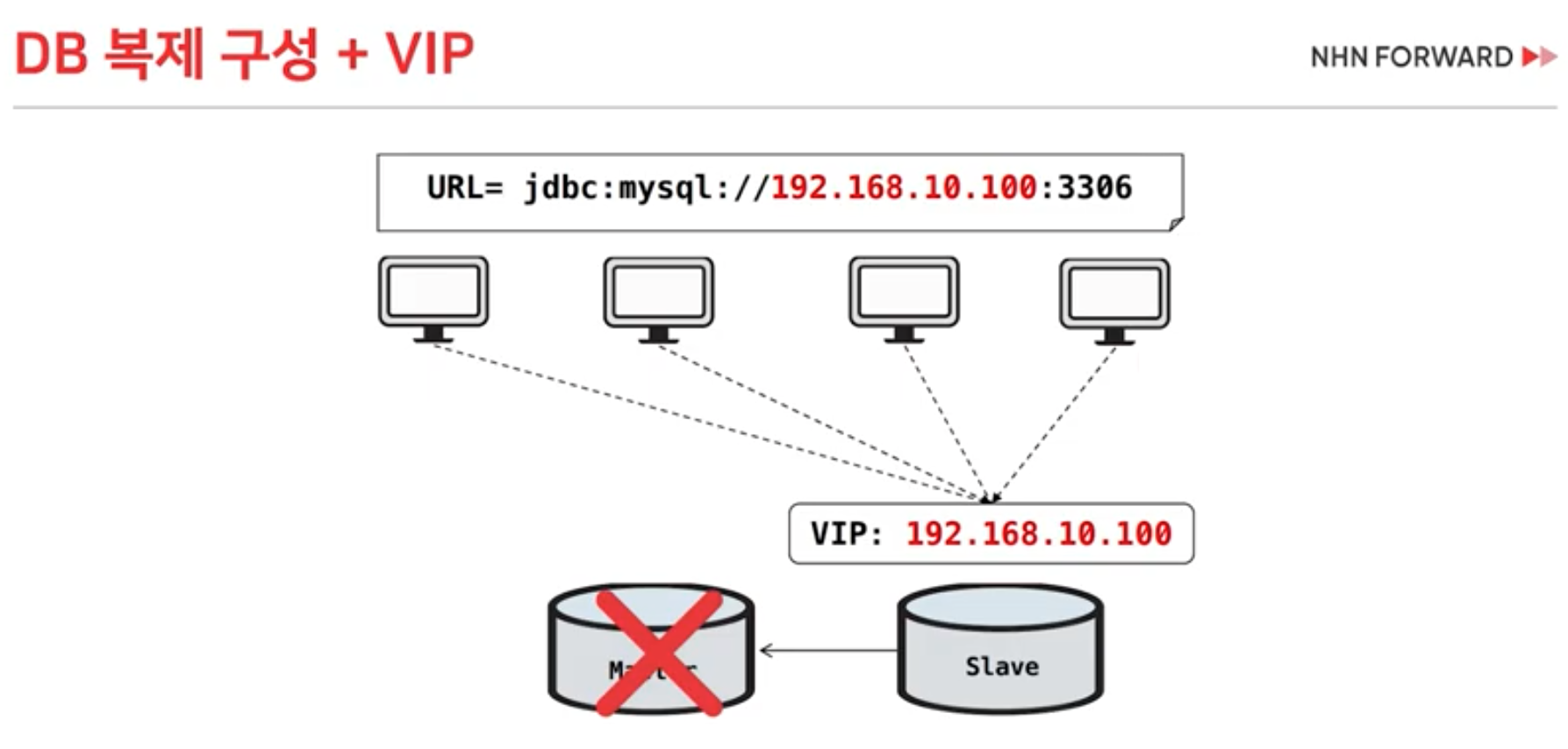 DB에 접근 시, 물리 IP가 아닌, VIP를 통해 접근하게 합니다.