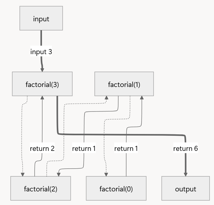 factorial(3)을 연산하는 과정을 통해 재귀 연산 과정을 알아봄