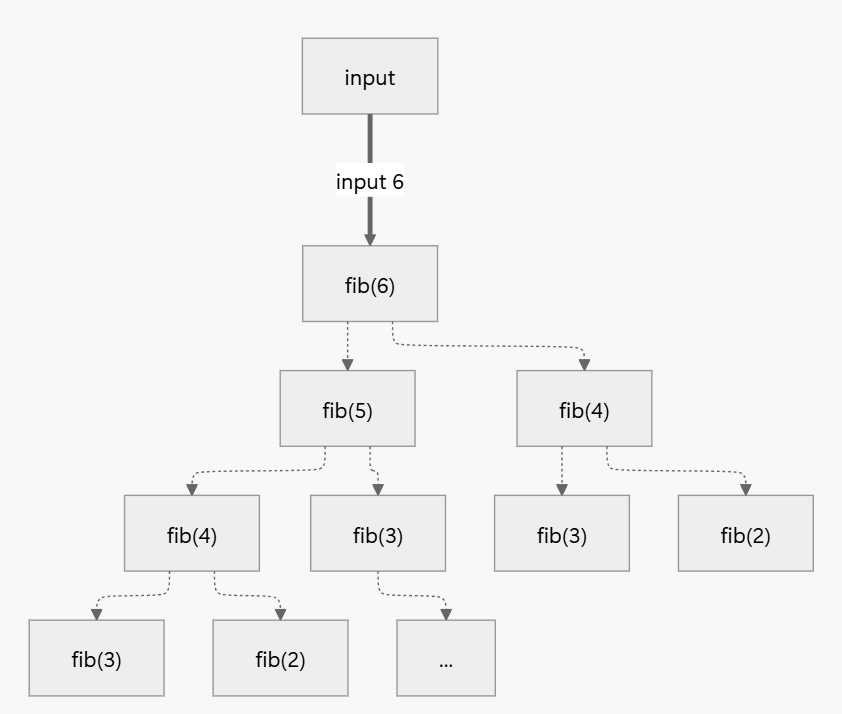 fib(6)을 연산하는 과정에서 fib(4)나 fib(3)이 반복적으로 등장하며 동일한 연산을 독립적인 작업 내에서 따로 따로 실시하는 비효율적인 방식으로 동작