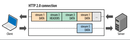 바이너리 프레이밍 계층을 통해 바이너리로 인코딩 되어 전송되는 것이다. [ 최소 단위가 바이너리 프레임으로 전환 ][ 그래서 HTTP1.x와 HTTP 2.0은 서로 호환이 되지 않는다. ]