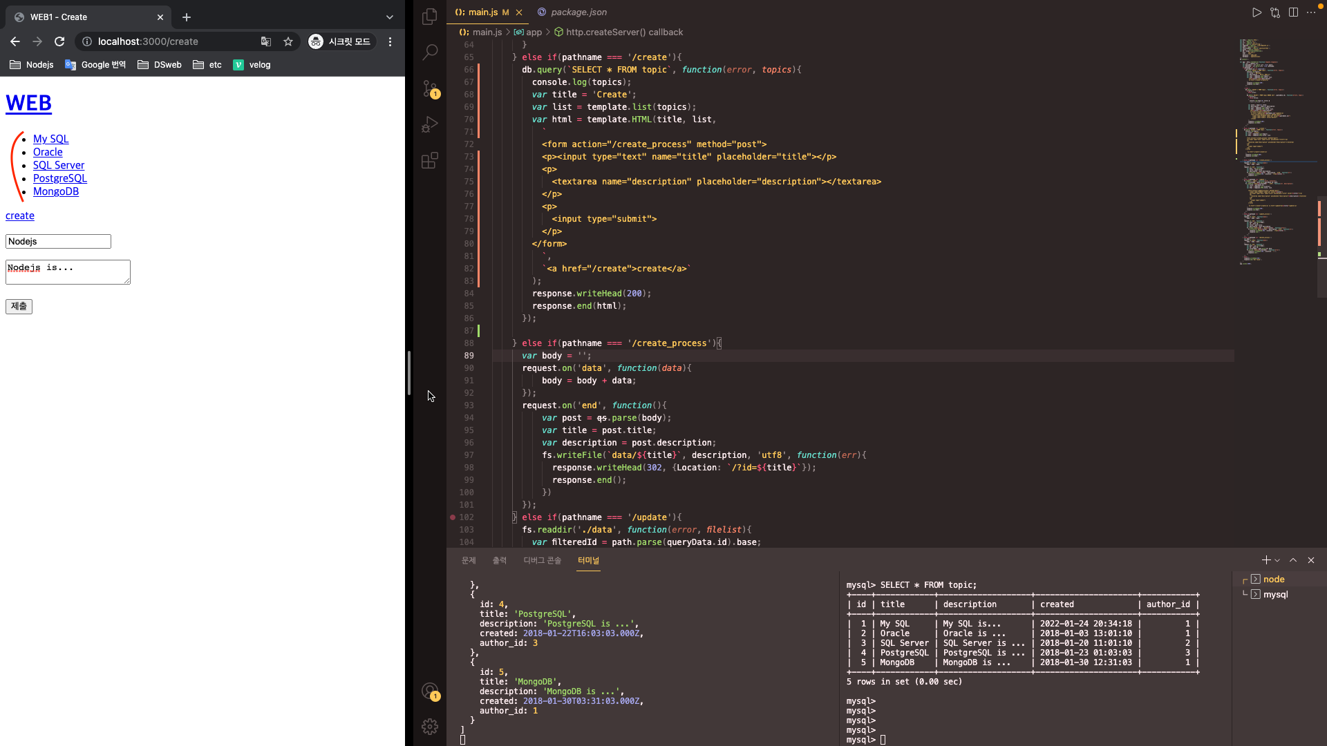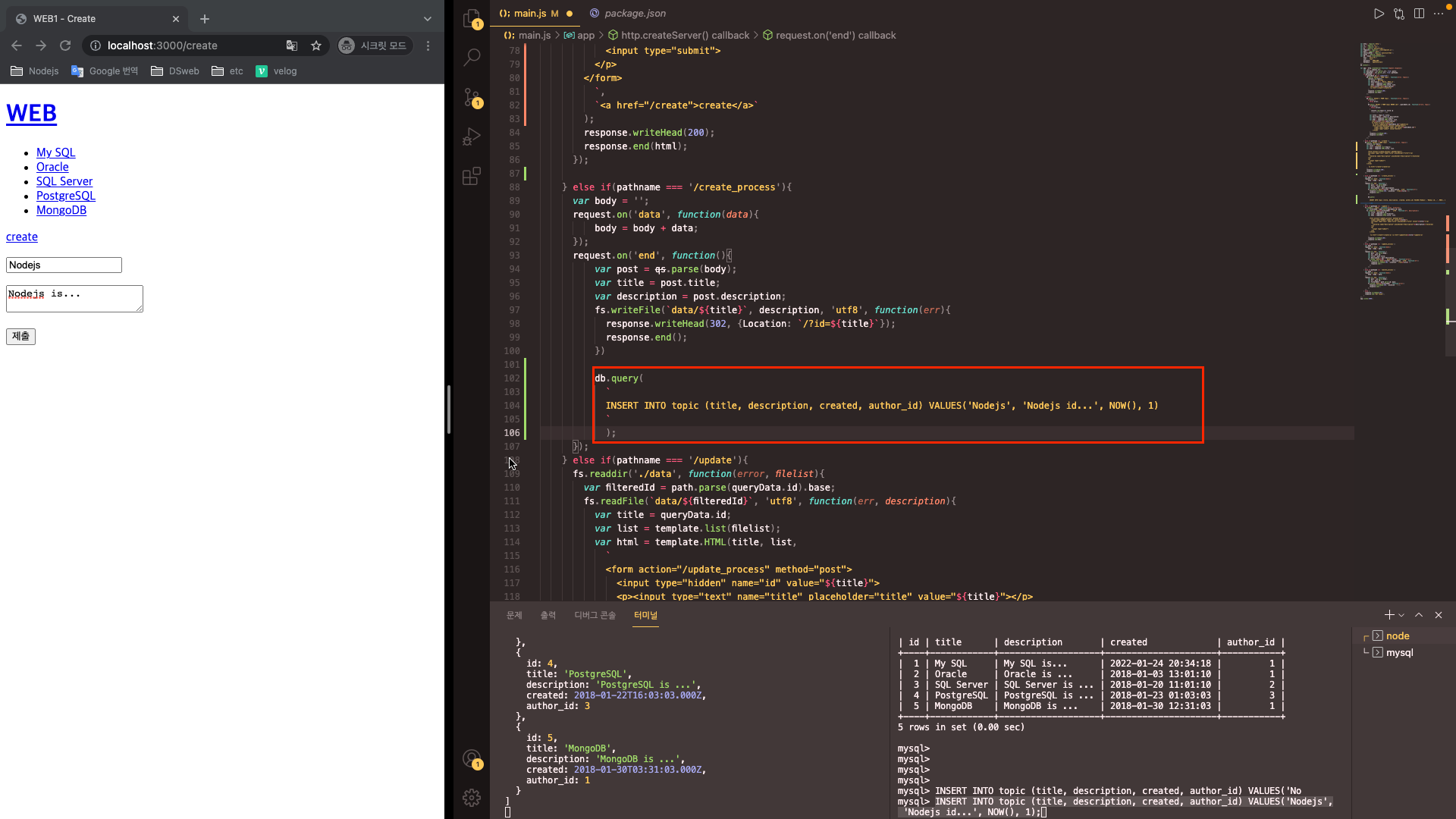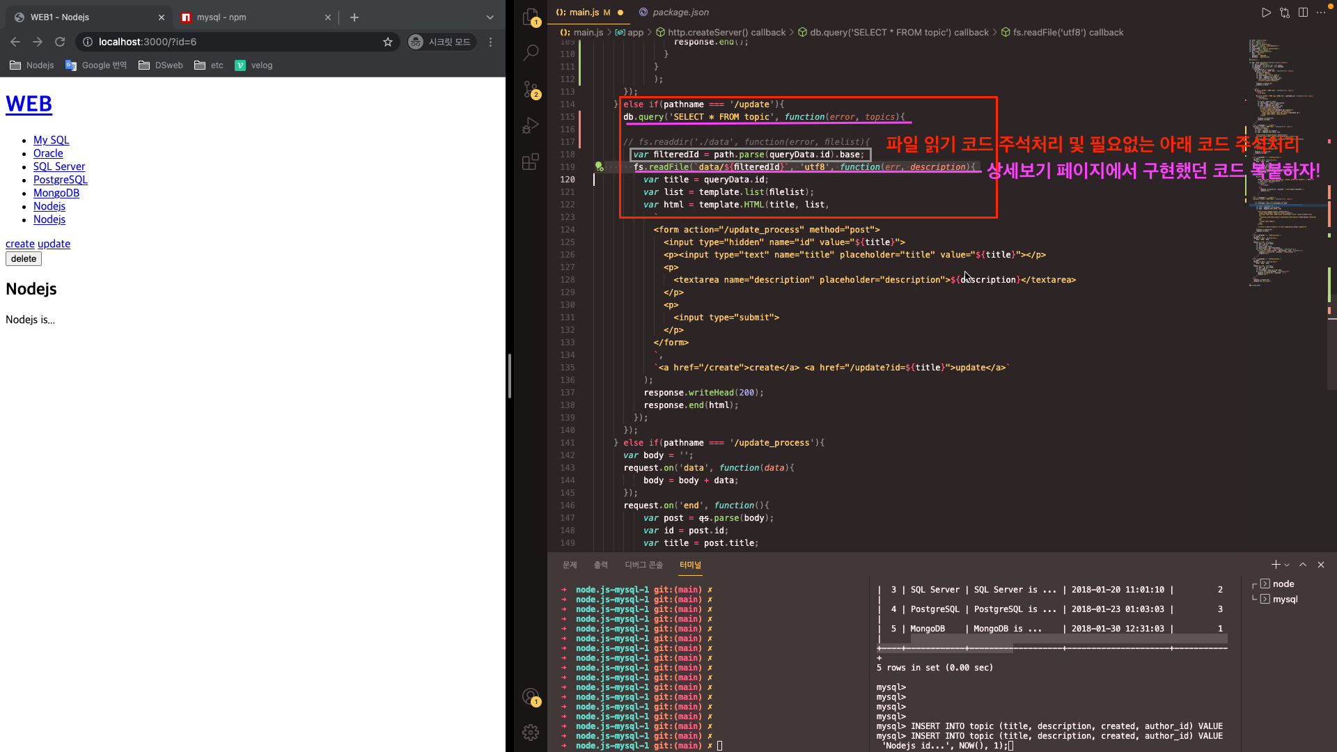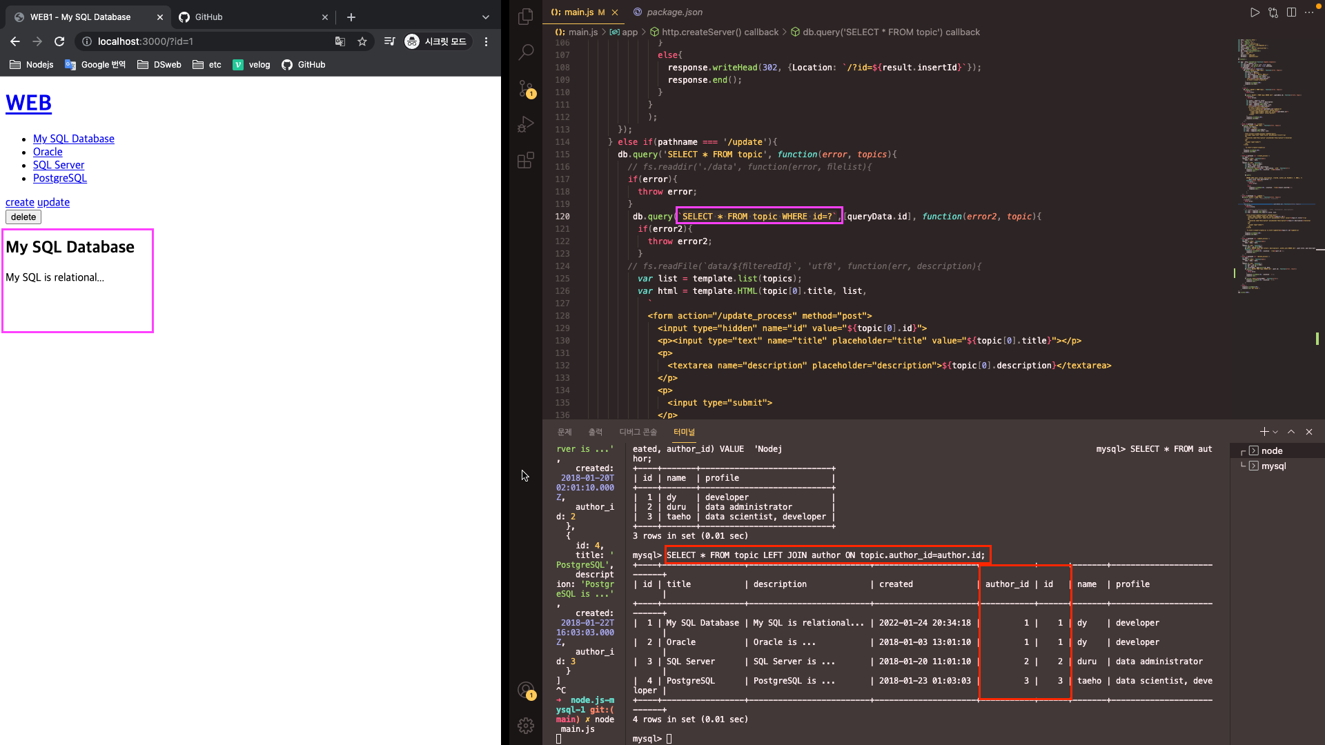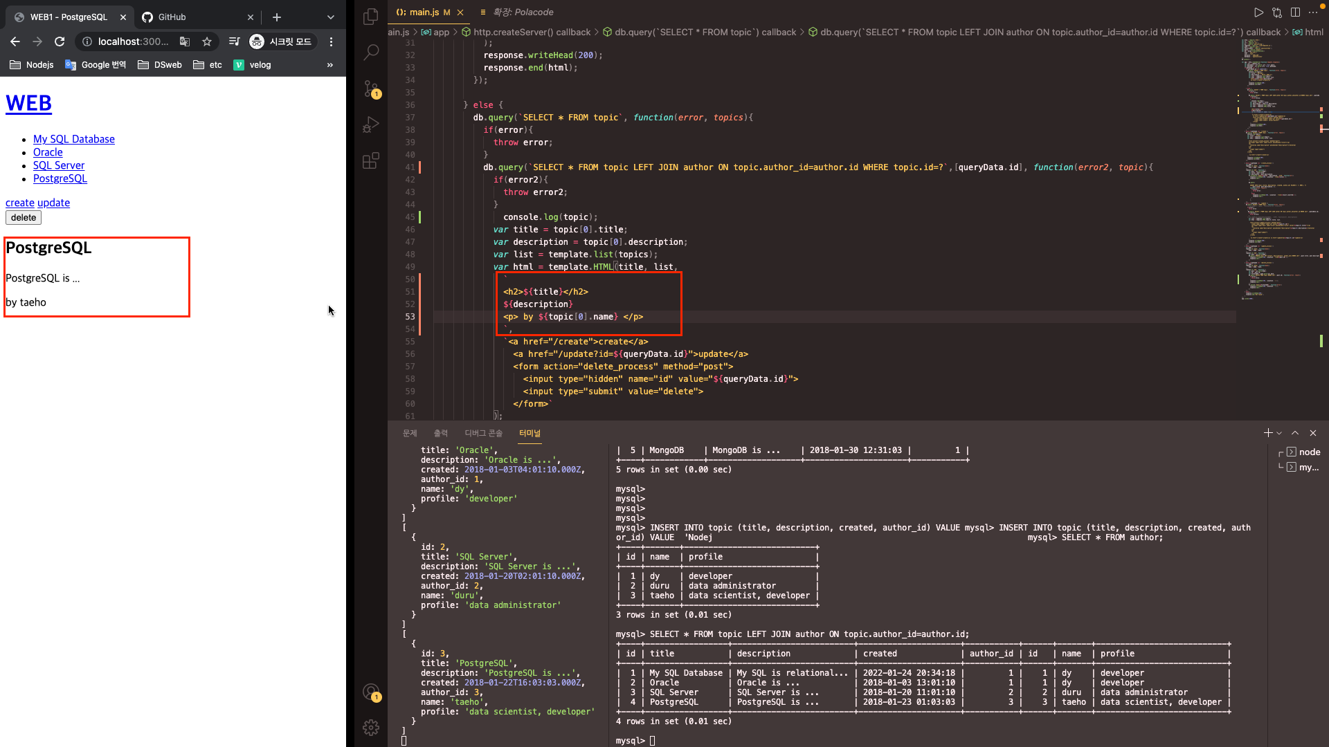 또한 db.query 코드를 작성해 본문을 작성했으니, 저 부분을 수정해 본문에 글 작성자를 출력할 수 있을 것이다.