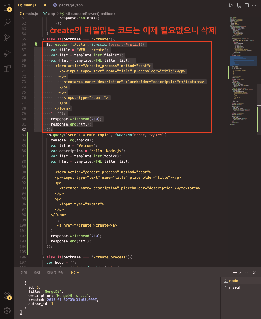 - create의 파일을 읽는 코드는 이제는 필요 없으니 삭제.