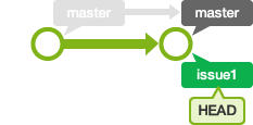 'HEAD'는 현재 사용중인 브랜치에 위치하게 된다. 위 그림에서는 'issue1' 브랜치에 'HEAD'가 위치하게 되는 것.