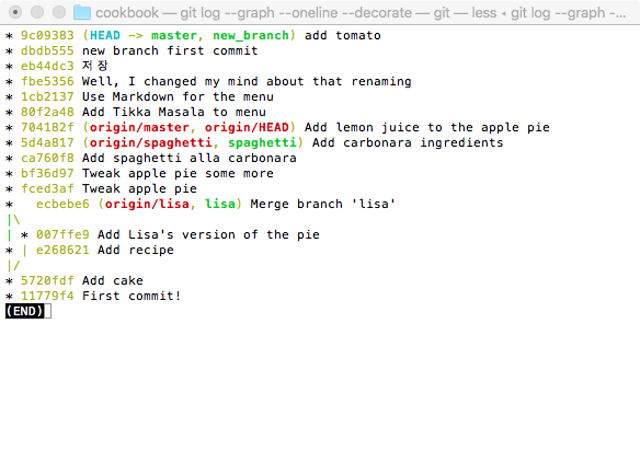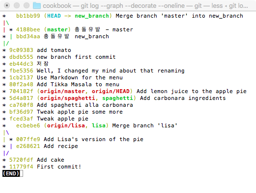 menu.txt파일을 확인 해보자HEAD 는 현재 브랜치를 가리키며 master는 병합한 브랜치다.Spaghetti alla Carbonara