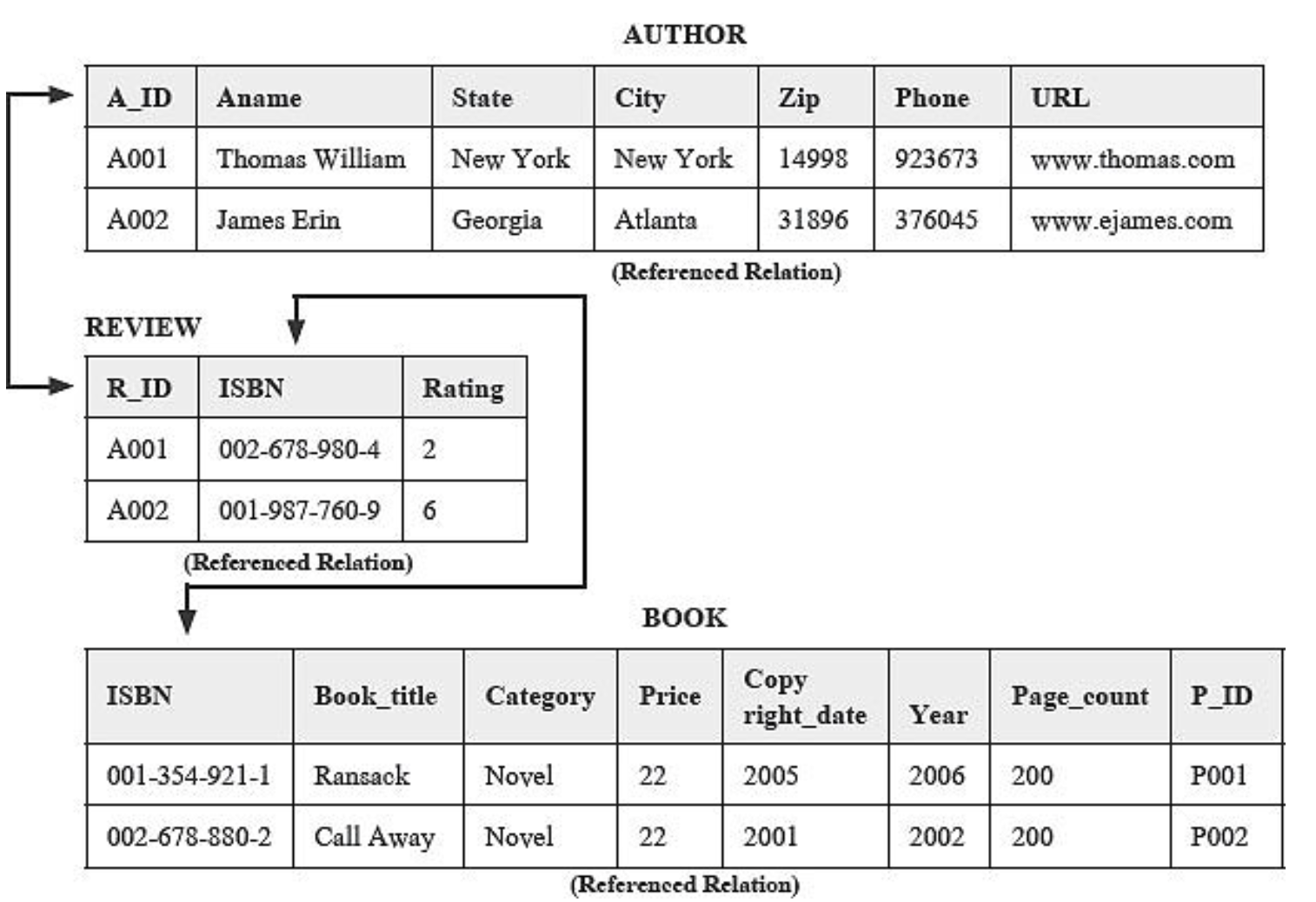 REVIEW 테이블의 R_ID은 AUTHOR 테이블의 A_ID에서 가져온 것이다. 이처럼 각 테이블마다 관계를 맺고 있는 것을 확인할 수 있는데, 리뷰 릴레이션의 ISBN은 리뷰 릴레이션의 키이면서 북 릴레이션에 저장되어 어떤 도서 번호인지 알 수 있도록 관계를 맺고 있다.