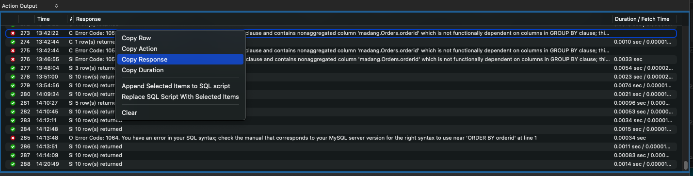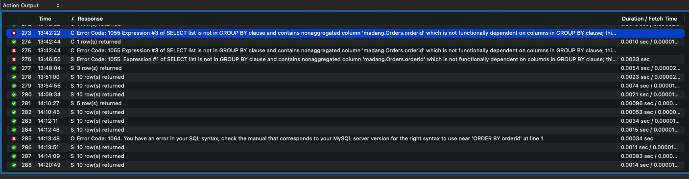 Error Code: 1055 Expression #3 of SELECT list is not in GROUP BY clause and contains nonaggregated column 'madang.Orders.orderid' which is not functionally dependent on columns in GROUP BY clause; this is incompatible with sql_mode=only_full_group_by