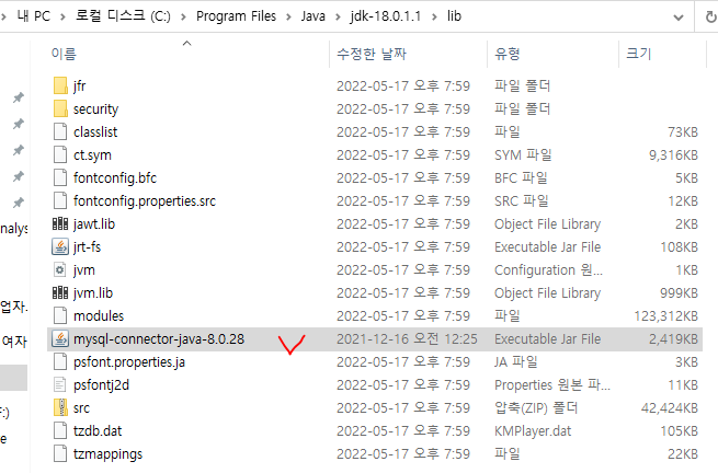 내 pc> 로컬 디스크(c:) > Program Files > Java > jdk-18.0.1.1 >