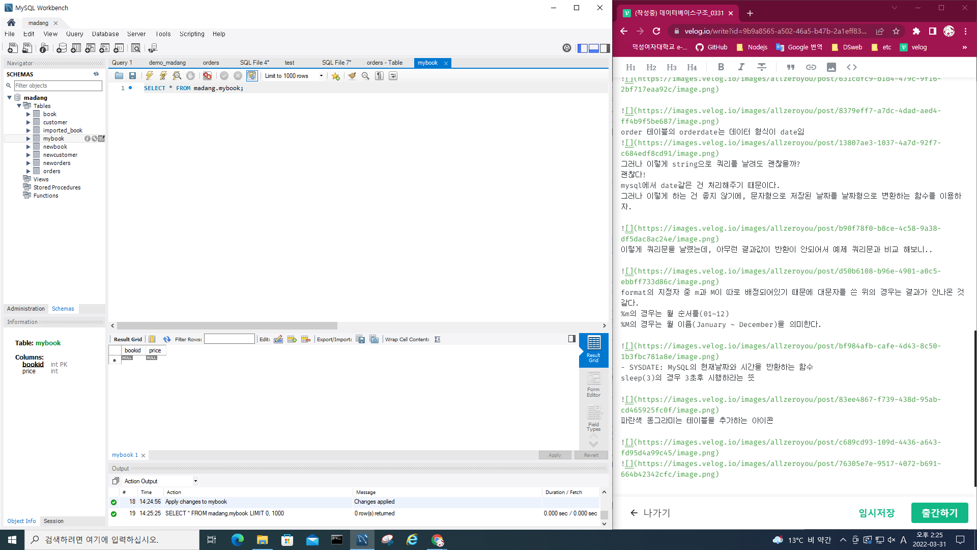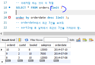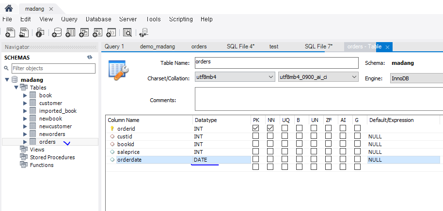 이때 bookid가 3인 것은 null이므로 직접 NULL이라고 입력하지 않고, 그냥 값을 비워둔다.