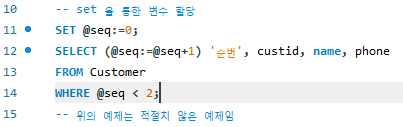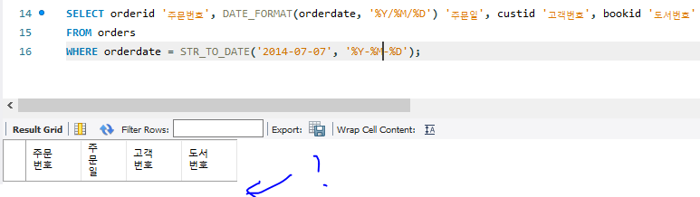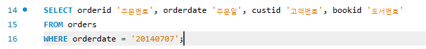 이렇게 쿼리문을 날렸는데, 아무런 결과값이 반환이 안되어서 예제 쿼리문과 비교 해보니..
