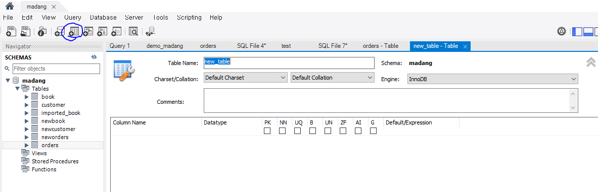 table 명에 마우스를 갖다대면 3개의 아이콘이 보이는데 맨 오른쪽 표 아이콘을 클릭하자