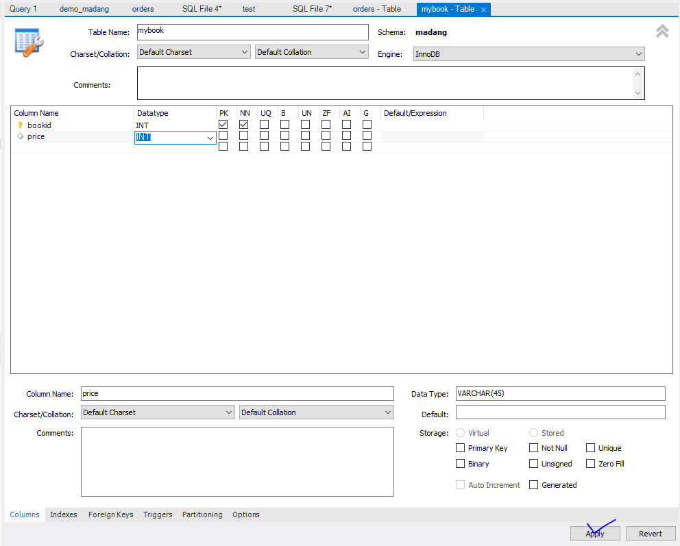 마찬가지로 Apply를 누르게 되면 이러한 쿼리문이 생길 거라는 작업 창이 뜨게 되고 Apply를 눌러 적용시키자.