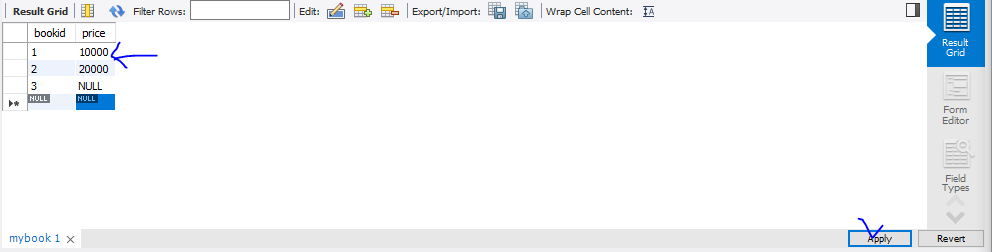 아래 'Result Grid'에 직접 값을 입력해 표를 채우자.