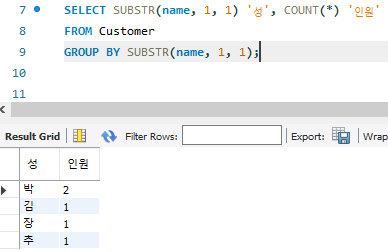 SUBSTR: 지정한 길이만큼의 문자열을 반환하는 함수