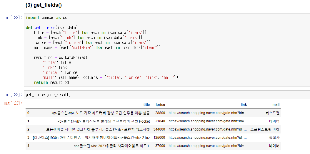 "mall": mall_name}, columns = ["title", "lprice", "link", "mall"])