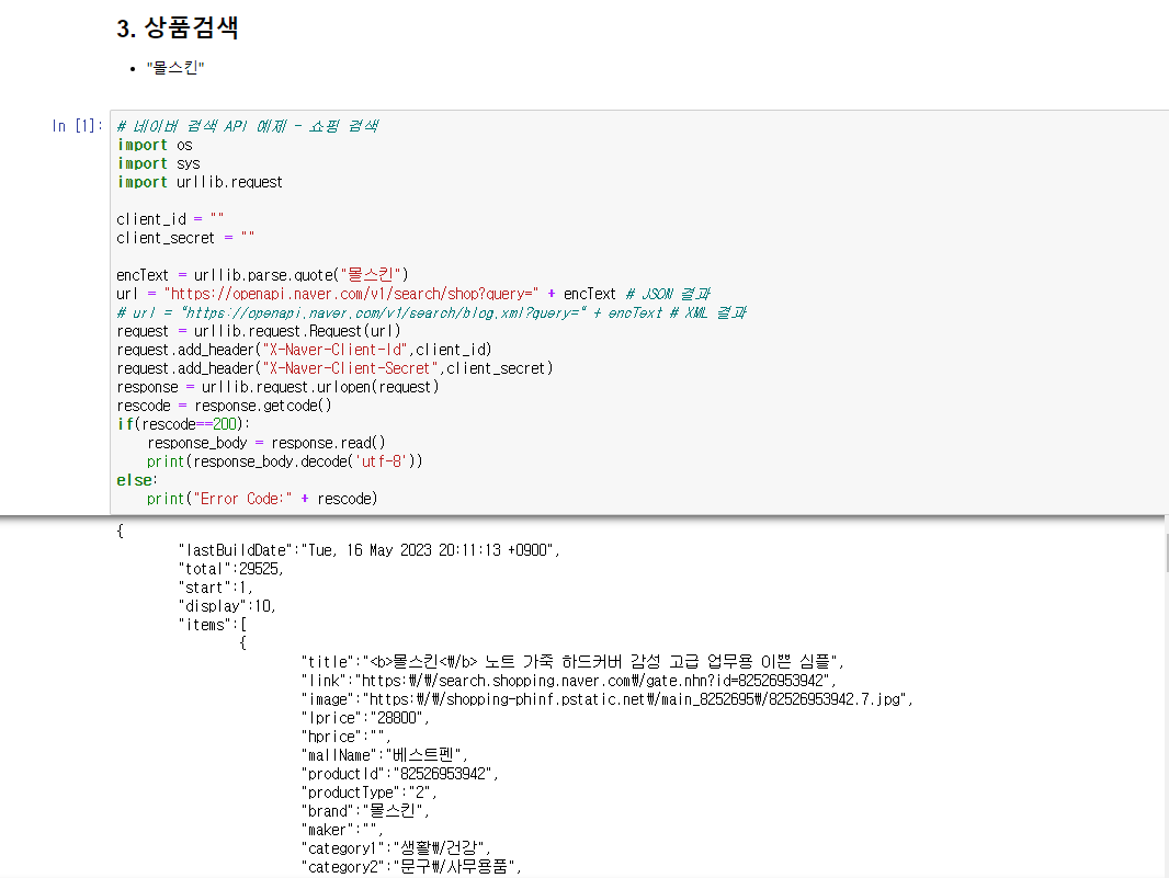# 네이버 검색 API 예제 - 쇼핑 검색