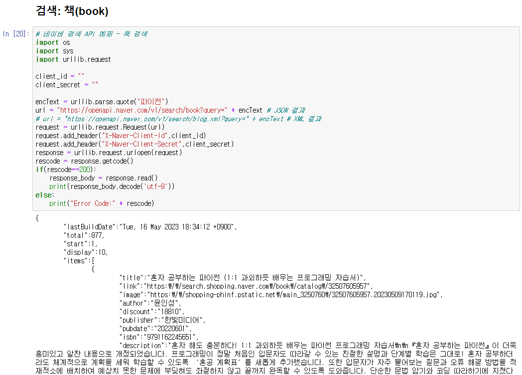 url = "https://openapi.naver.com/v1/search/book?query=" + encText # JSON 결과