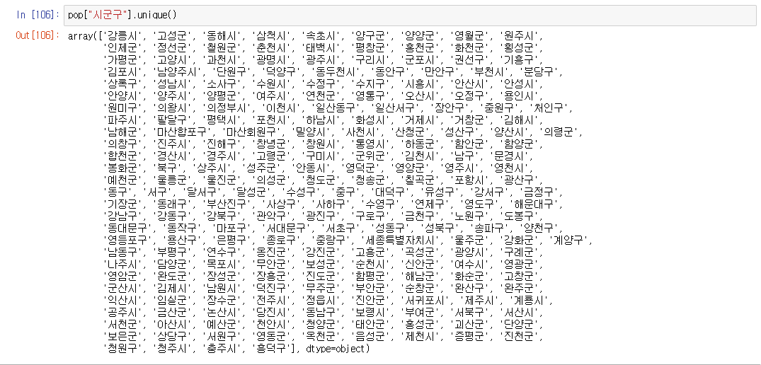 si_name[idx] = row["광역시도"][:2] +" "+row["시군구"][:-1]
