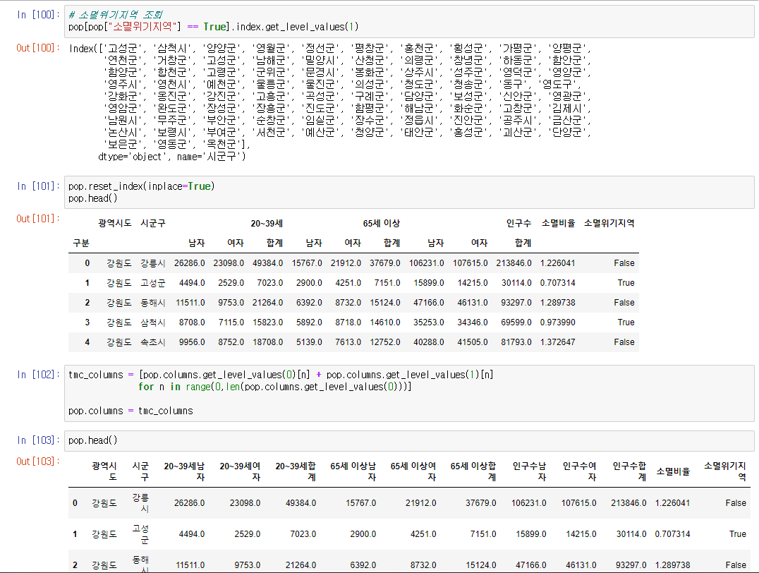pop[pop["소멸위기지역"] == True].index.get_level_values(1)