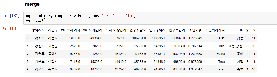 pop = pd.merge(pop, draw_korea, how="left", on="ID")