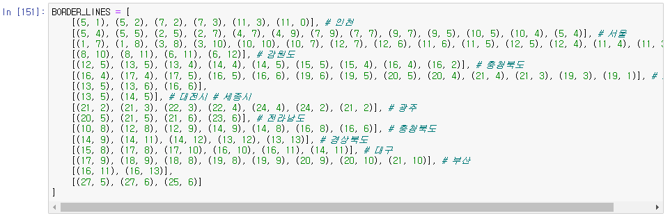 [(8, 10), (8, 11), (6, 11), (6, 12)], # 강원도