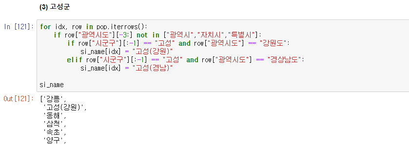 if row["시군구"][:-1] == "고성" and row["광역시도"] == "강원도":
