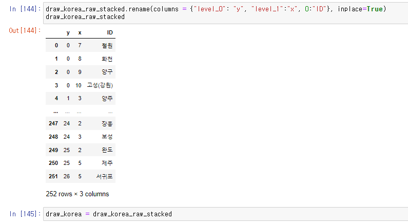draw_korea_raw_stacked.rename(columns = {"level_0": "y", "level_1":"x", 0:"ID"}, inplace=True)