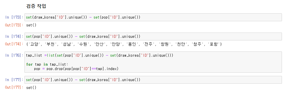 tmp_list =list(set(pop["ID"].unique()) - set(draw_korea["ID"].unique()))