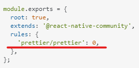 eslintrc.js 파일 내에서 prettier를 비활성화하여 해결
