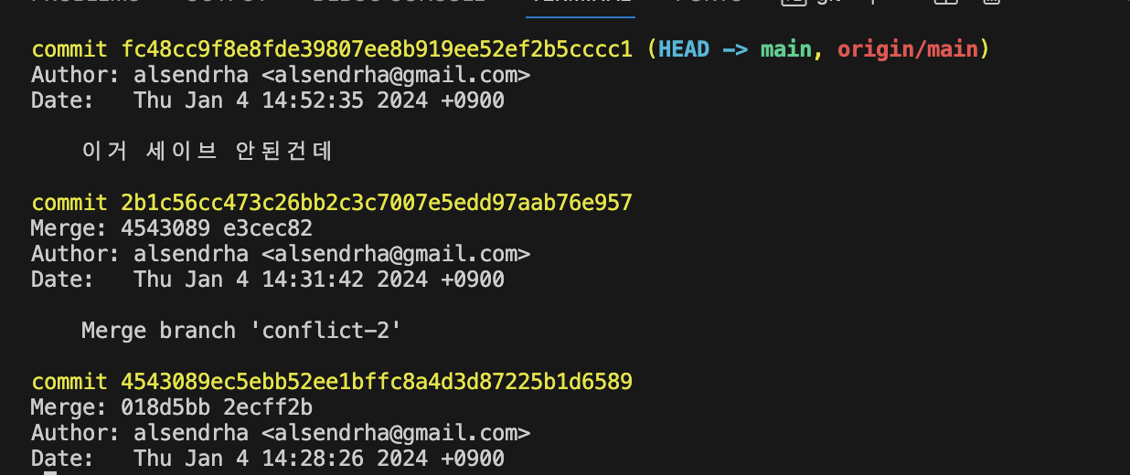 이동했던 커밋 메시지도 남아있고 또한 4543089 코드의 커밋을 변경했단 내역도 새로 추가된다.