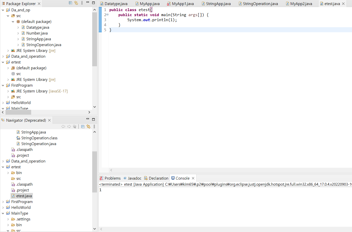 위의 사진을 보면 src파일의 내부가 아닌 ertest 프로젝트 파일 내에 .java 파일이 위치한다.