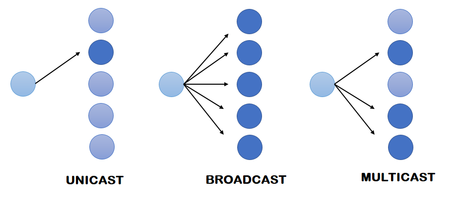 유니캐스트(Unicast) | 하나의 송신자가 하나의 수신자에게 데이터를 전송하는 1:1 통신 방식 | 컴퓨터 A가 컴퓨터 B에게 파일을 전송하는 경우 |