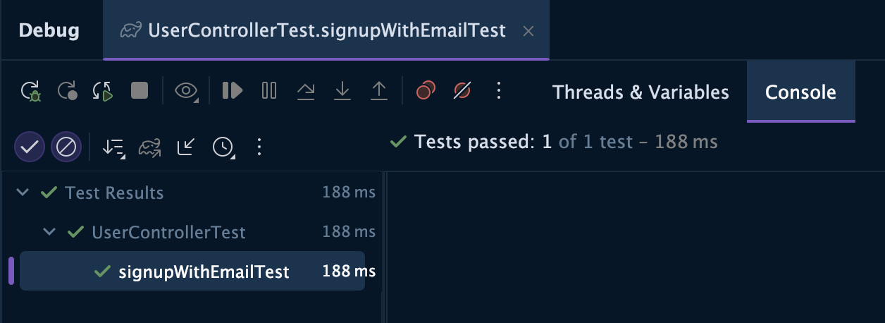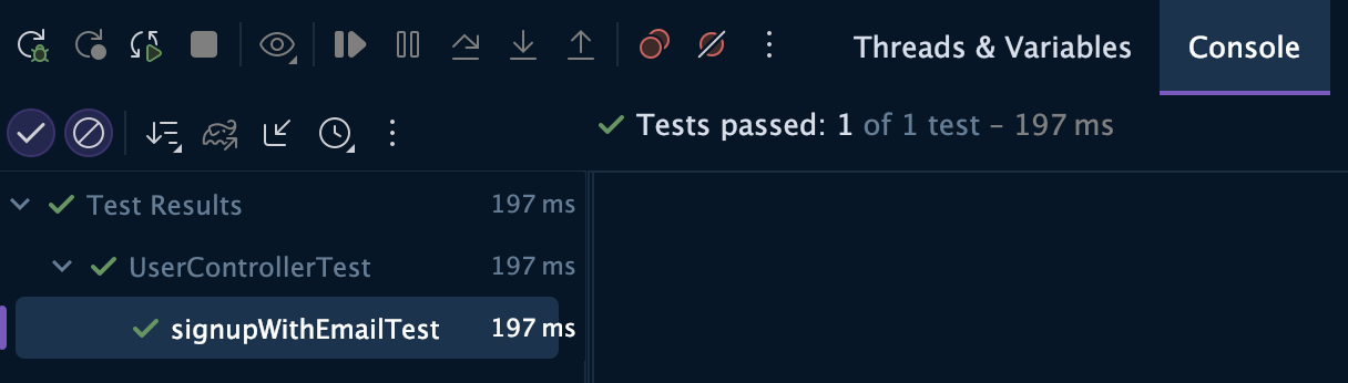 UserController 의 signupWithEmail 메서드를 테스트했고, 코드는 다음과 같다.