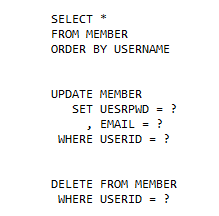 * CRUD 구현(C-Insert, R-Select, U-Update, D-Delete)