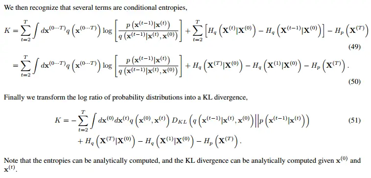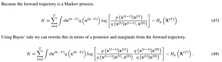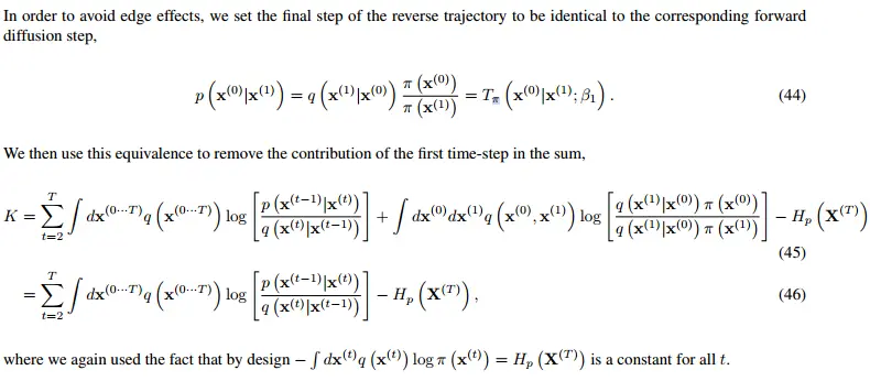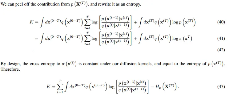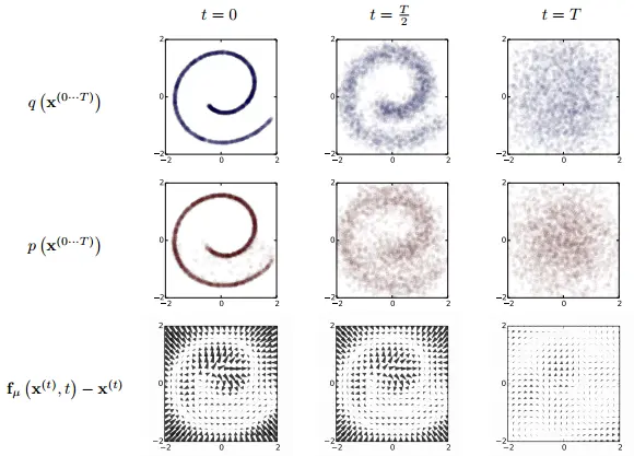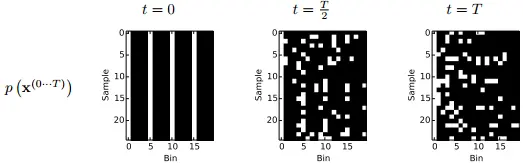data dist. q(x(0)) --> tractable dist. π(y) by repeated Markov diffusion kernel Tπ(y∣y′;β) for π(y) where β is the diffusion rate