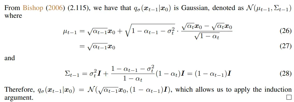 이제 Bayes rule을 이용하면 아래와 같이 forward process를 얻을 수 있고, 모든 는 와 에 dependent 하게 됨