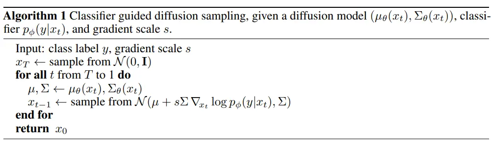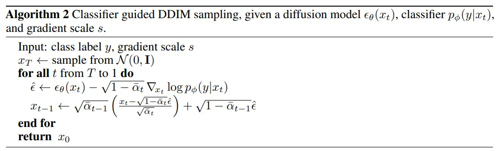 diffusion model output 와 classifier gradient를 구한 후, 에 classifier gradient를 더해준다