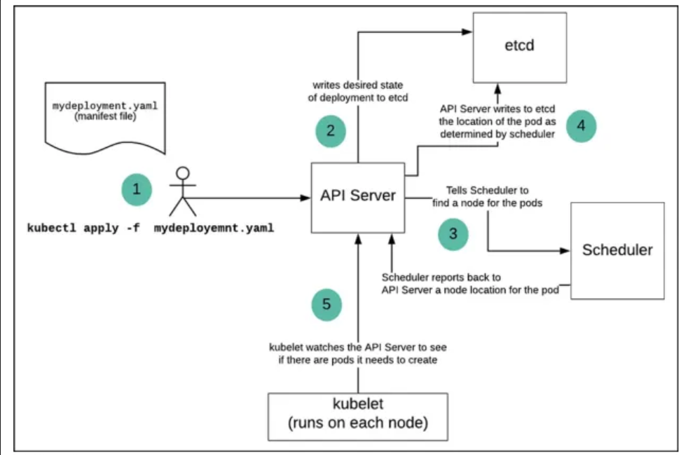 kubectl apply 명령어를 실행해 쿠버네티스 클러스터에 리소스를 생성하라는 요청을 보낸다.manifest 파일etcd에 기록(저장)메인 컨테이너와 네트워크, 스토리지를 통한 밀접한 공유가 필요한 다른 컨테이너를 운용해야할 때 멀티 컨테이너 구조를 사용한다.