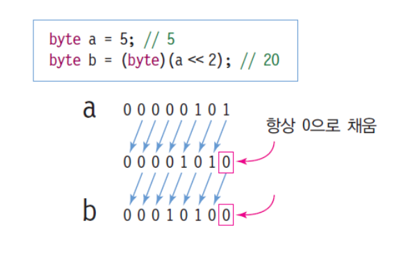 System.out.println(c << 2); //c를 2비트 왼쪽 시프트
