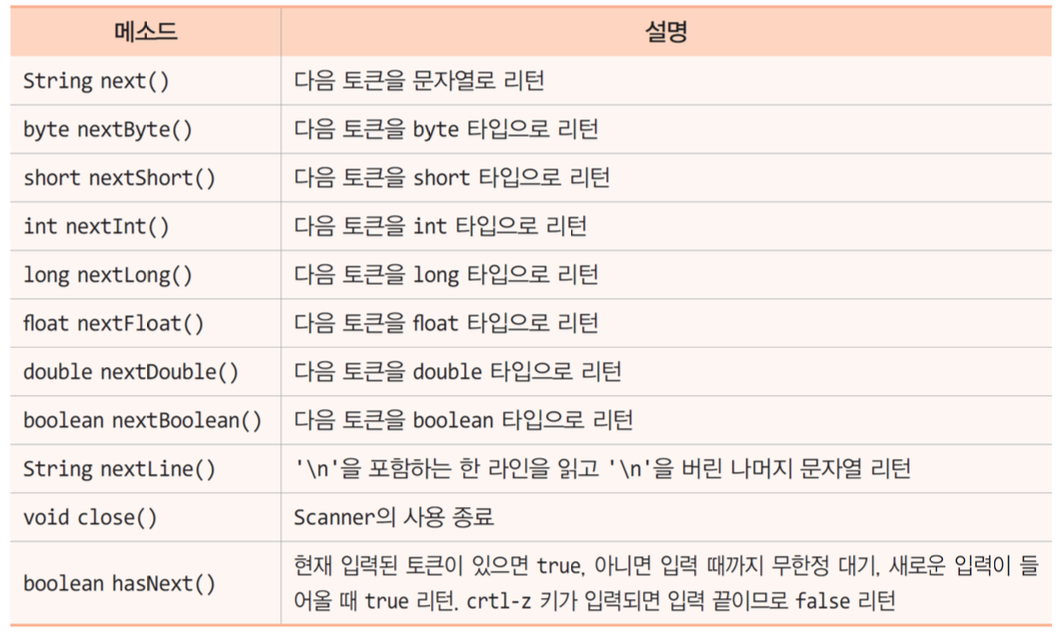 //Scanner는 키 입력을 공백으로 구분된 토큰 단위로 버퍼에 보관되어있던 정보들을 끊어서 읽는다.
