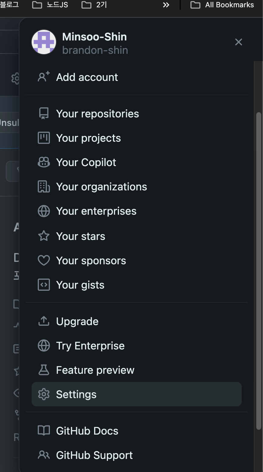 공개키 내용을 복사하여 github 계정 셋팅에 들어가 ssh키 등록을 해준다.