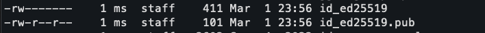 다음과 같이 id_ed25519 라는 개인키 파일이 생성되었고, id_ed25519.pub이라는 공개키가 생성됐다.