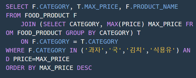 Q49 - 식품분류별 가장 비싼 식품의 정보 조회하기
